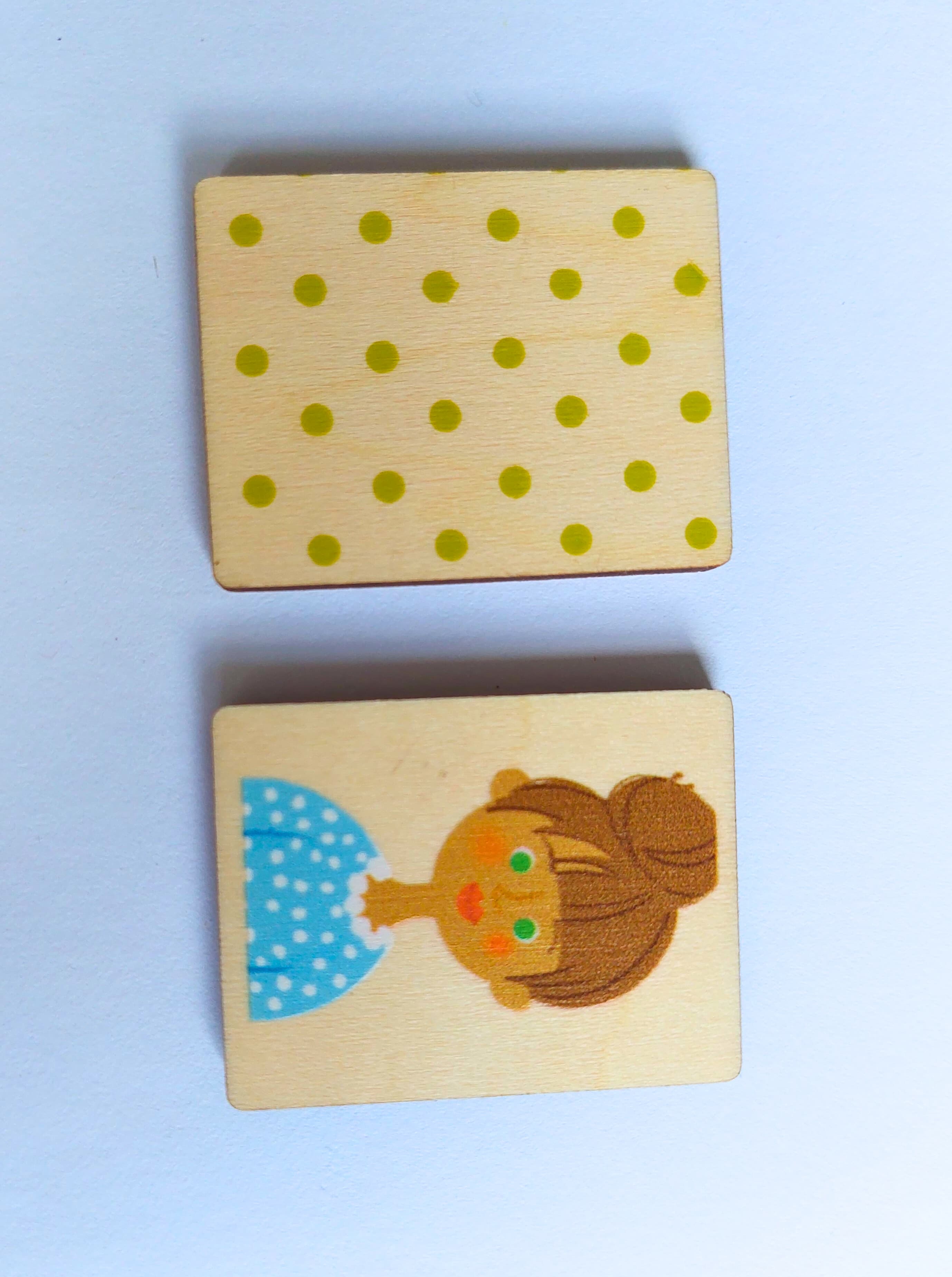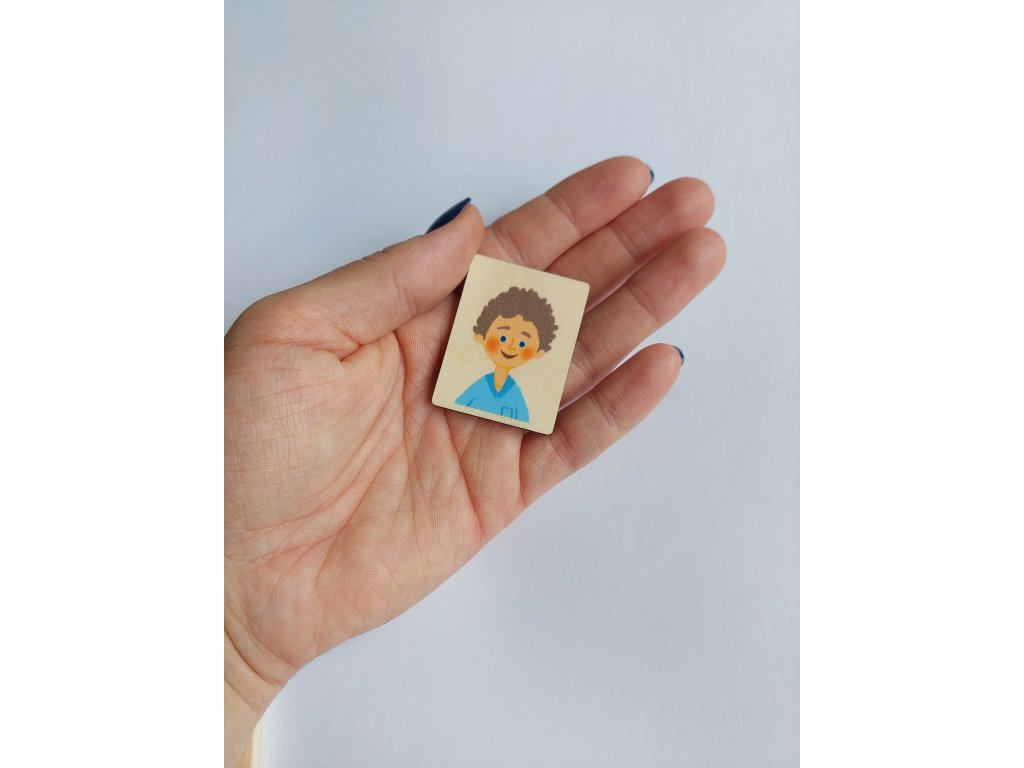 Dřevěné kameny mají rozměr 4 x 3 cm. Z jedné strany jsou krásné ilustrace lidí různého typu a z druhé strany jsou barevné