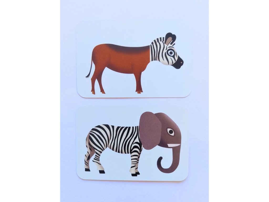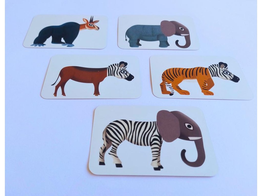 Karty jsou z pevné, o něco větší než klasické karty na "prší". Na každé kartě je vždy jedno složené zvíře - tělo má od jednoho zvířete a hlavu od jiného.