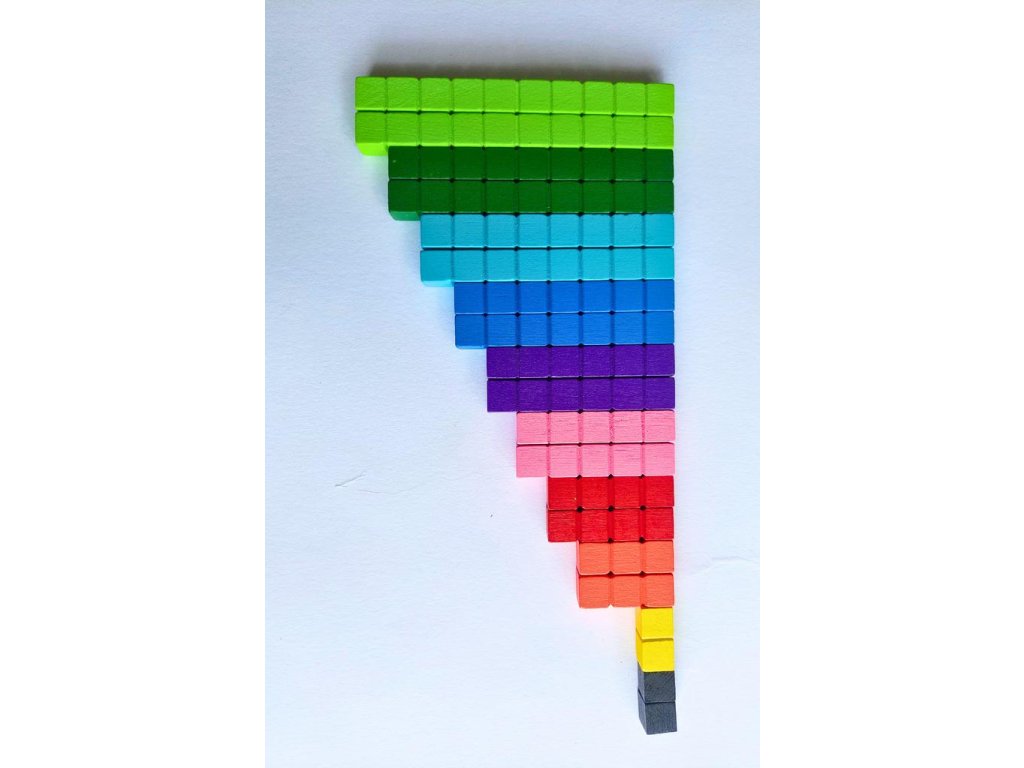 - Dřevěné barevné kostičky v 10ti různých délkách.