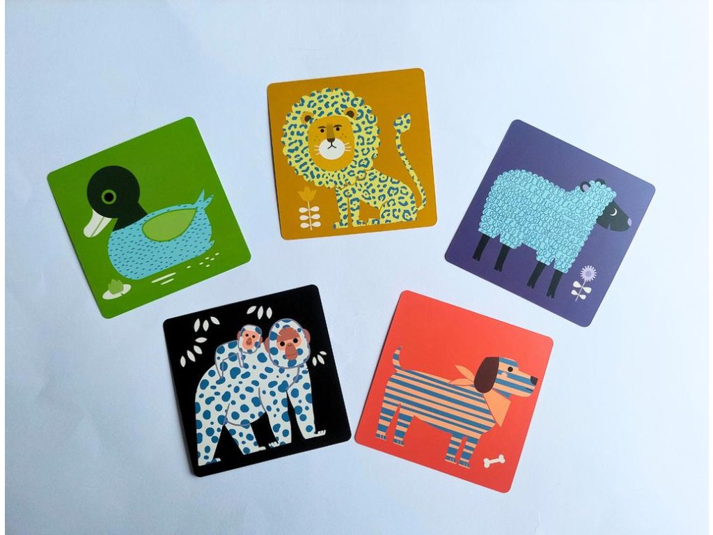 Zábavná hra při které děti vrství vzory, aby dosáhli zvířecího vzhledu na kartičce.