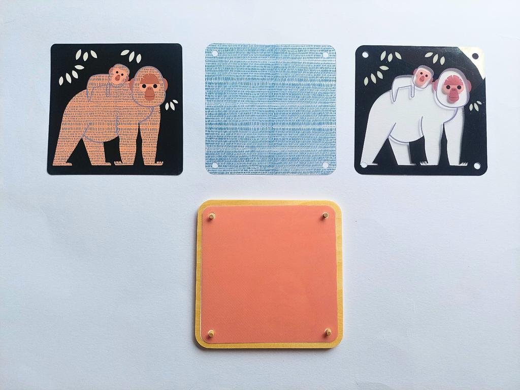 Nakonec už stačí jen nasadit kartičky ve správném pořadí na dřevěnou podložku a zkontrolovat si, zda se obrázky shodují.