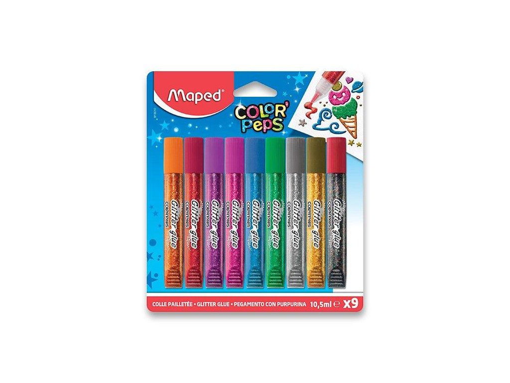 Sada 9 ks dekoračních lepidel se třpytkami v tubách. Jsou vhodná na každý povrch.