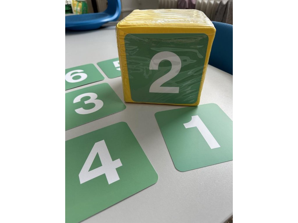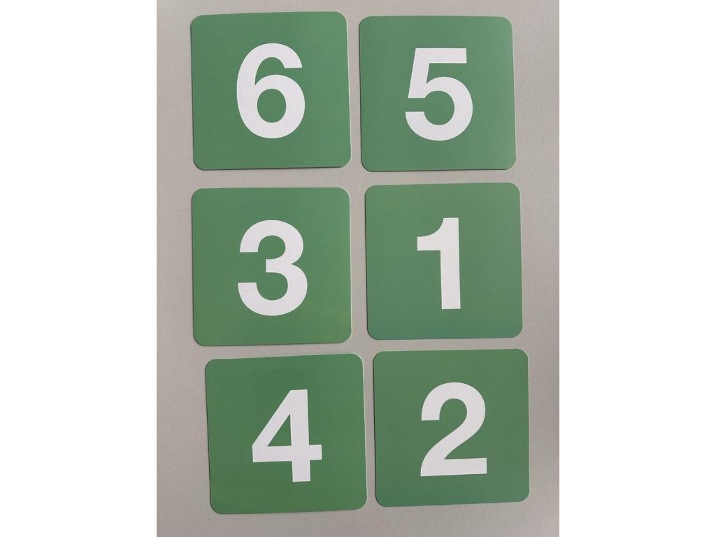 Karty mají rozměr 13 x 13 cm a v balení najdete číslice 1 - 6.