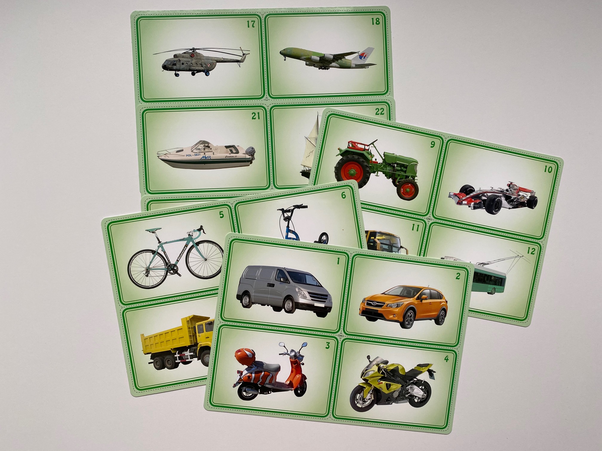 Při rozbalení máte velké karty (A5), které jsou připravené k rozstříhání (na každé kartě 4 obrázky).
