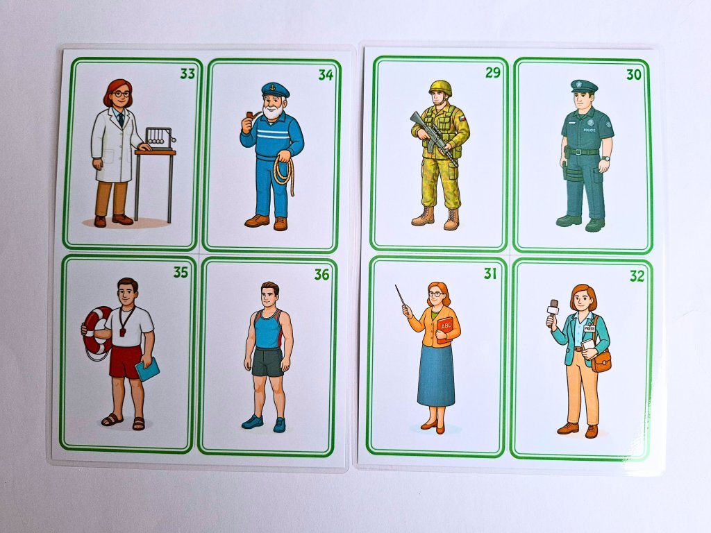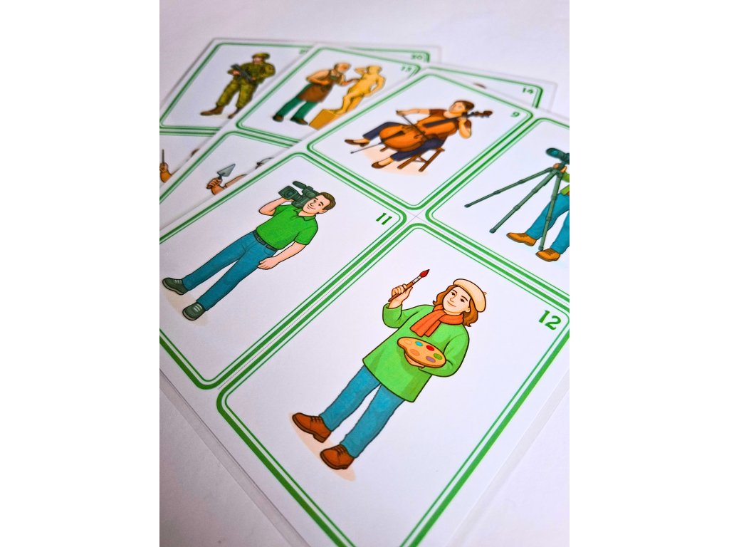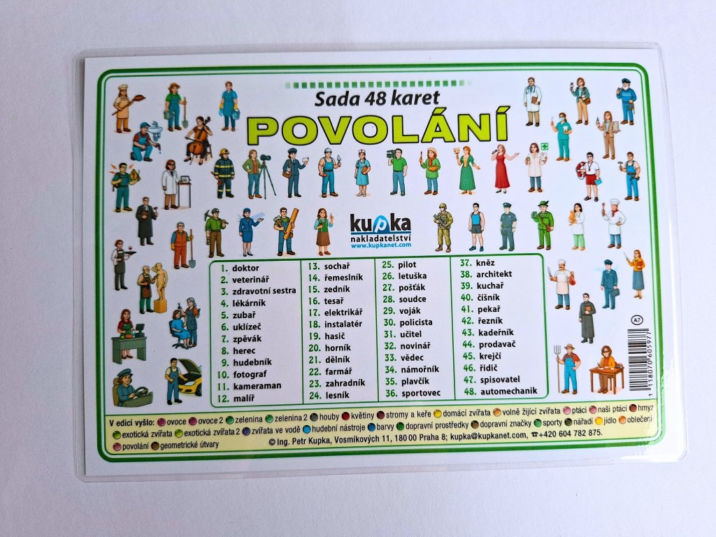 Při rozbalení máte velké karty (A5), které jsou připravené k rozstříhání (na každé kartě 4 obrázky).