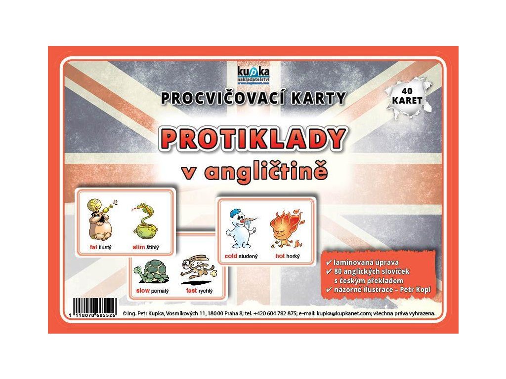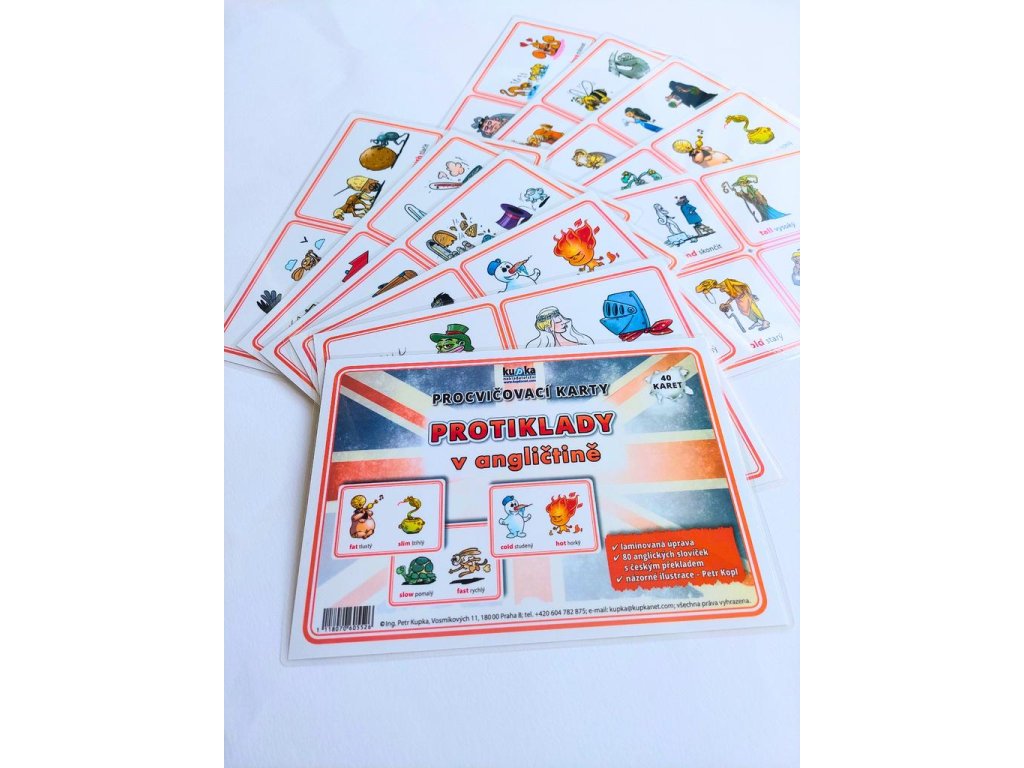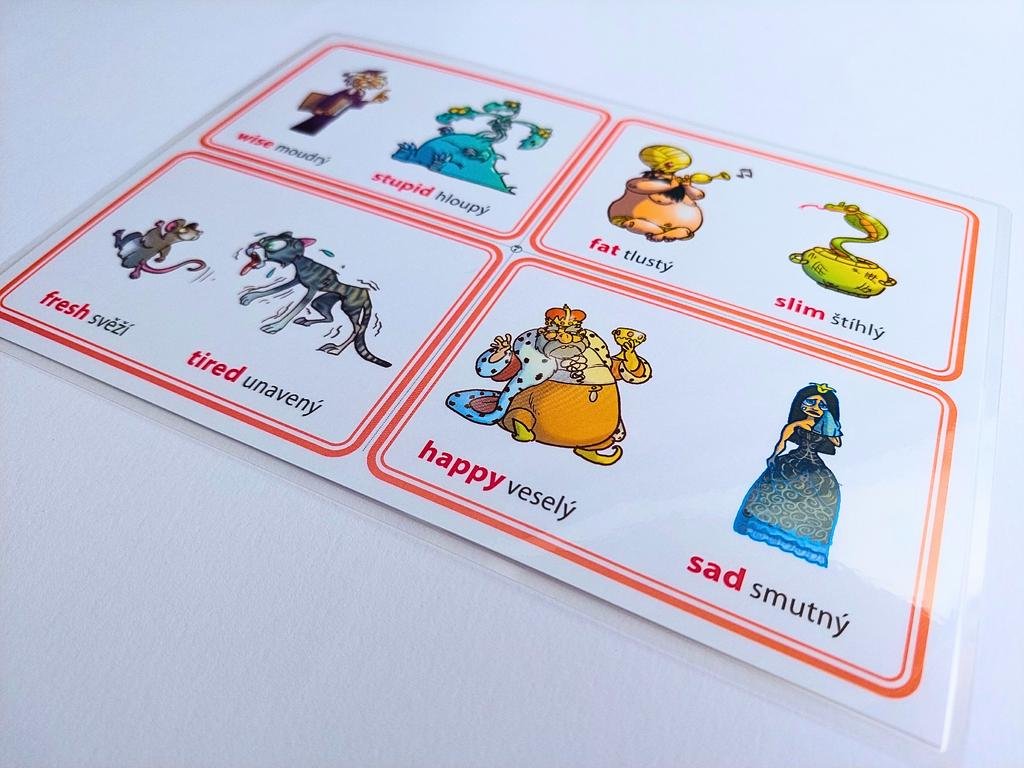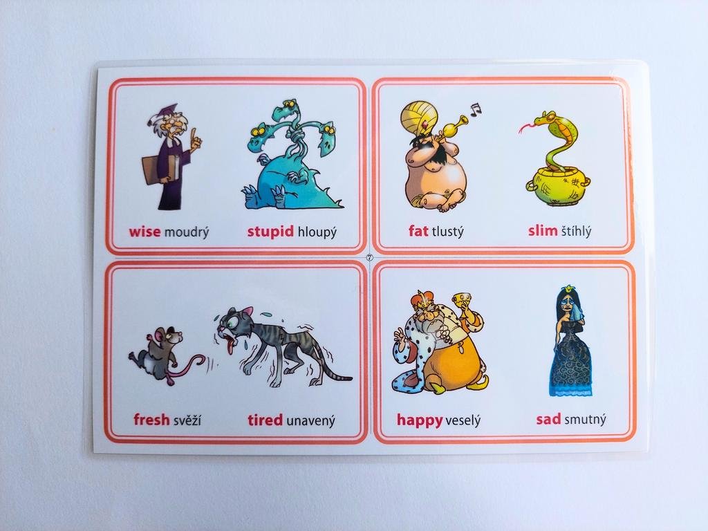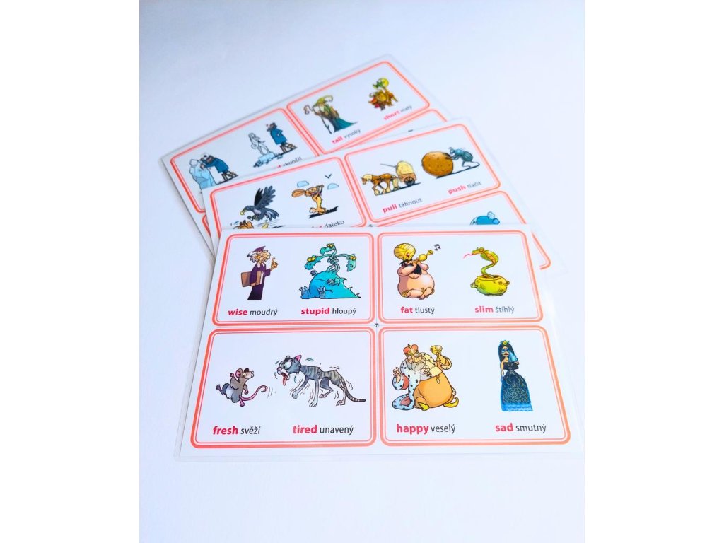 Ke každému obrázku je napsaný protiklad v angličtině, ale také v češtině.