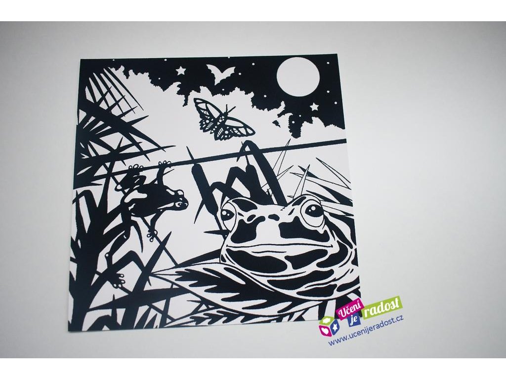 Černá místa jsou pokrytá sametem, bílá místa jsou určena k vybarvení.