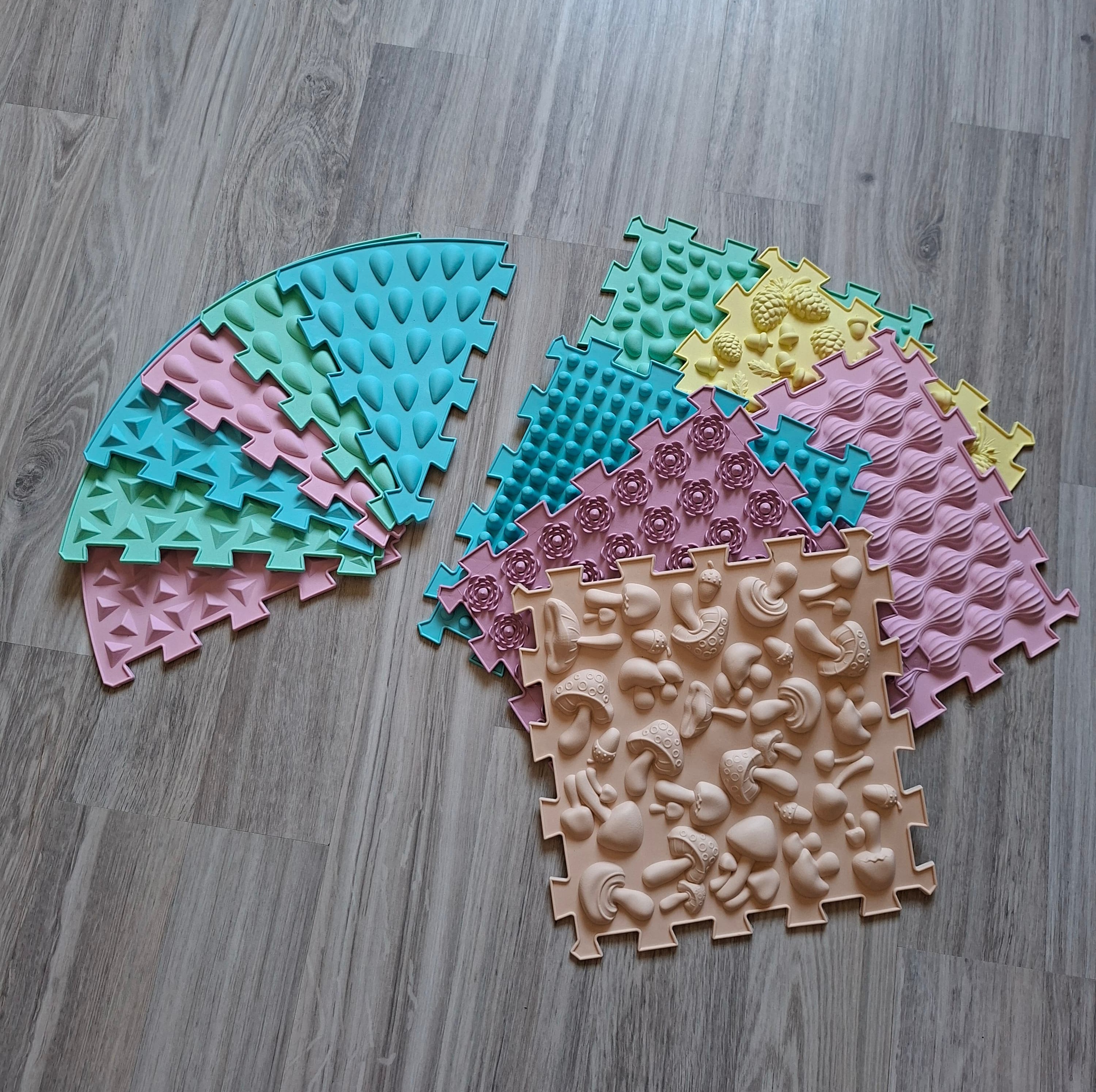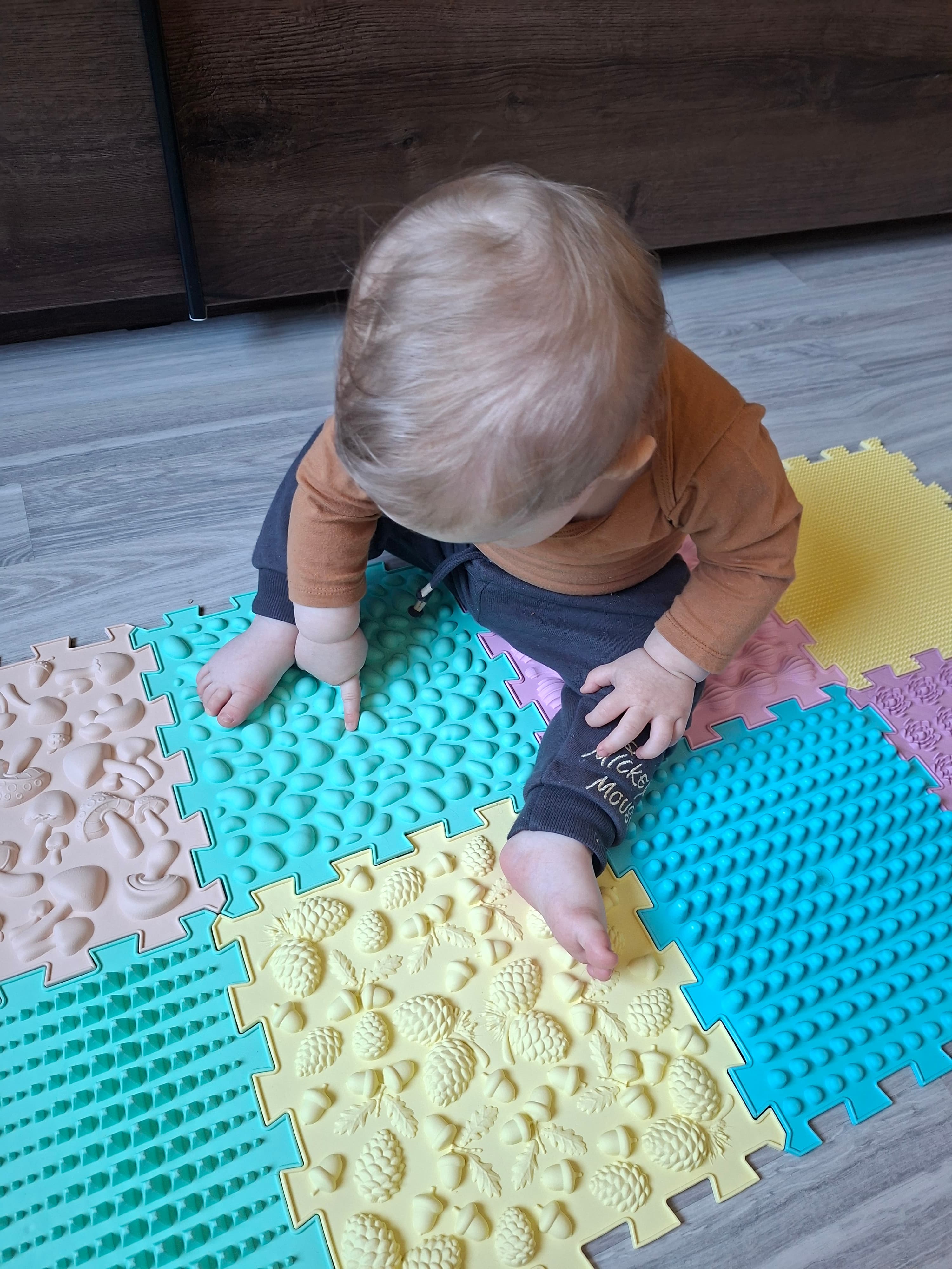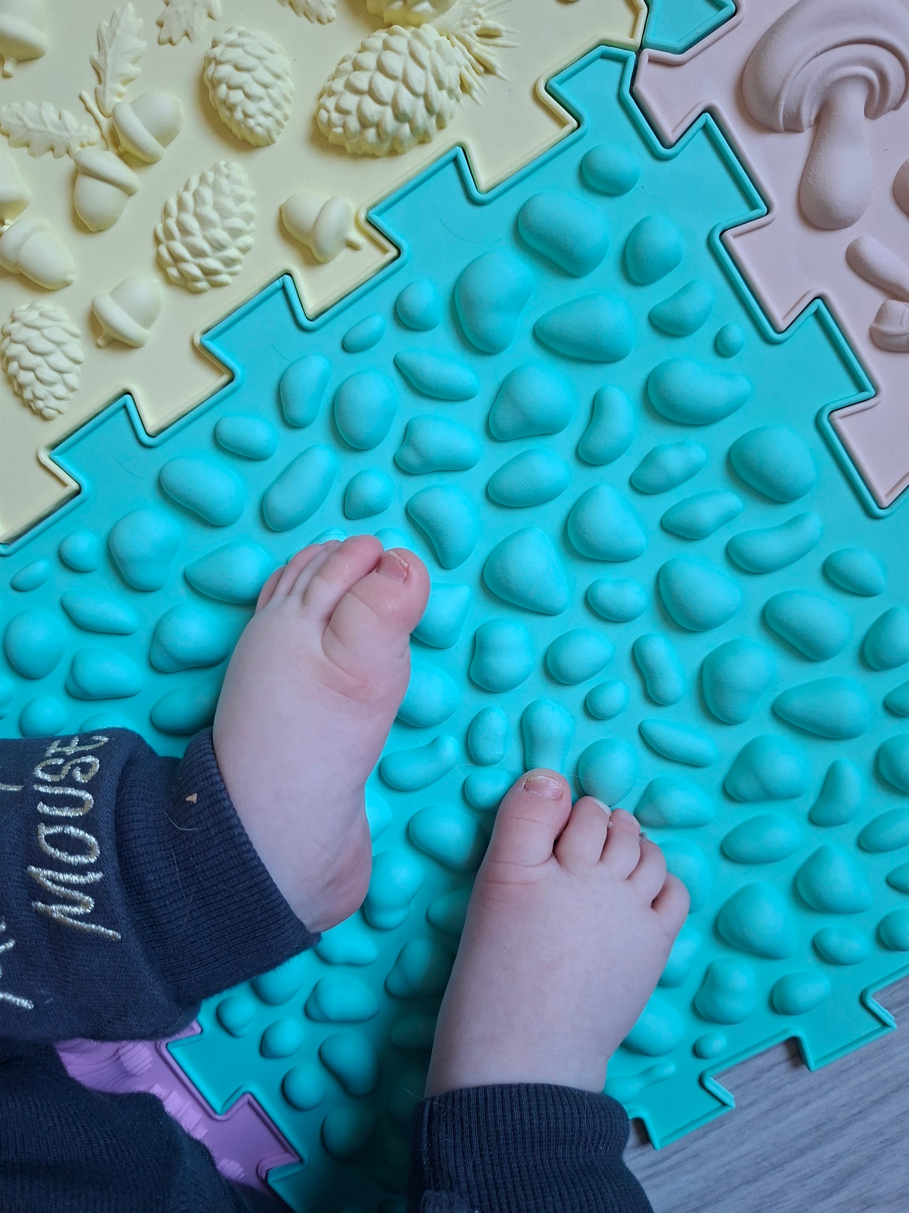 Tyto ortopedické puzzle pro děti jsou navržené pro přirozenou stimulaci chodidel a podporu zdravého vývoje nohou. Speciální povrch napodobuje nerovný terén, díky čemuž dochází k aktivaci svalů chodidel a posílení klenby.