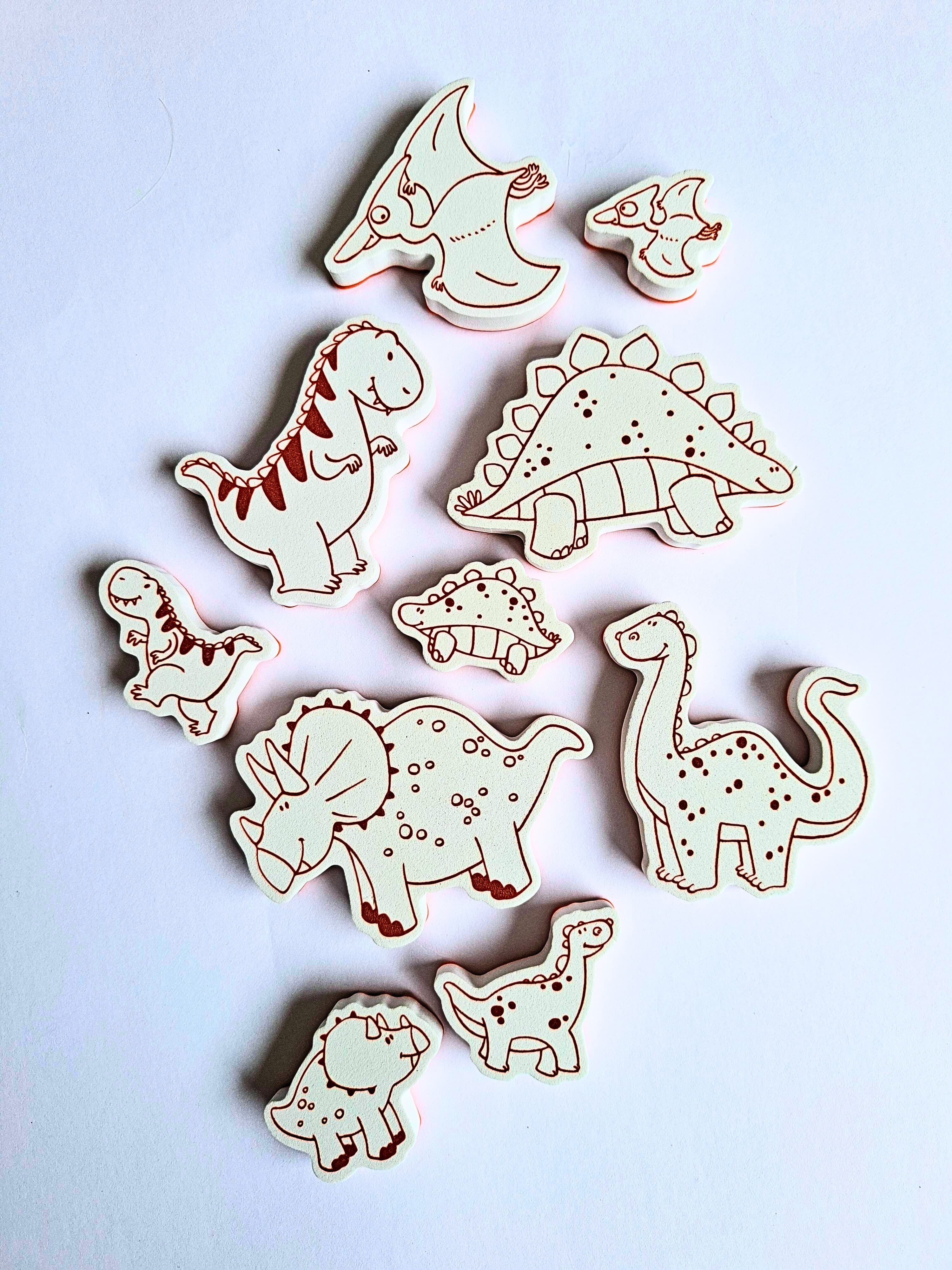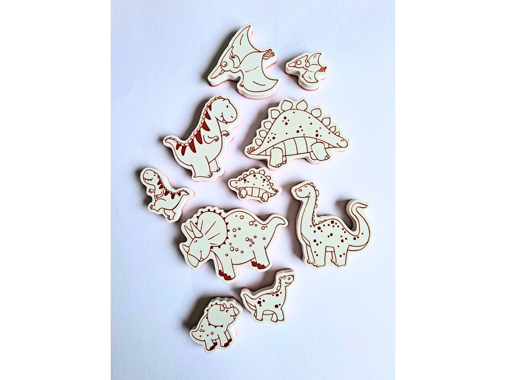 10 kusů razítek s dinosaury, která jsou na dotek měkká a příjemná.