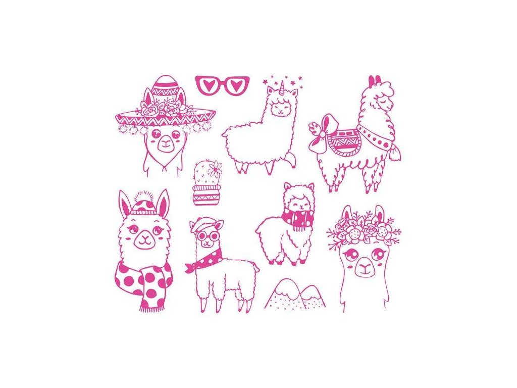 Sada obsahuje 10 různých razítek lam. Razítka jsou velká od 4,5 až 7 cm.