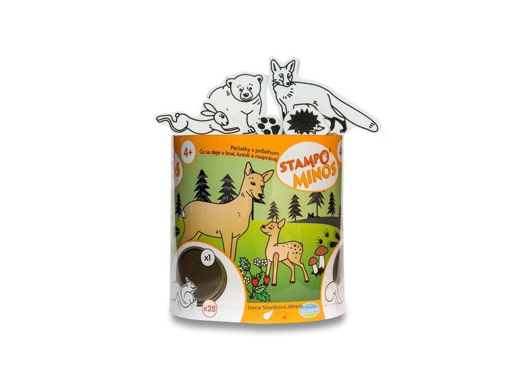 28 pěnových razítek, které jsou na dotek měkké a příjemné. Razítka mají různé velikosti a jsou tematicky zaměřená na lesní zvířata.