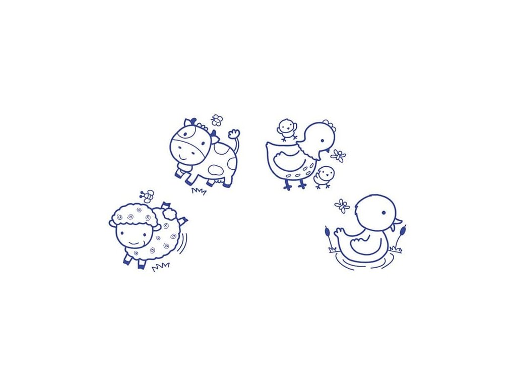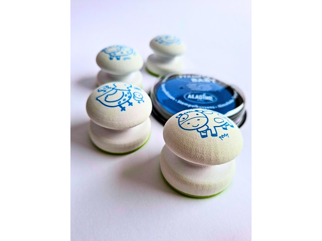 4 pěnová razítka, která mají ergonomický tvar = přizpůsobený pro pohodlné držení pro takto malé děti. Razítka jsou na dotek měkká a velmi příjemná.