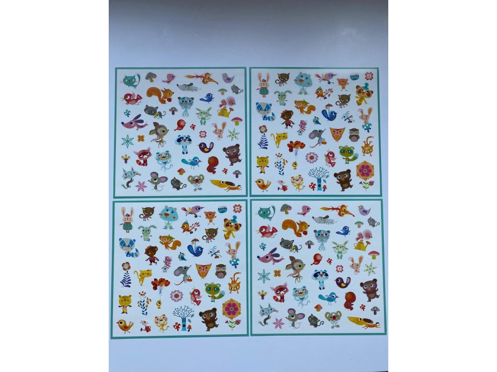 4 archy samolepek, ve kterých je dohromady 160 různých druhů (vždy 2 stejné archy).