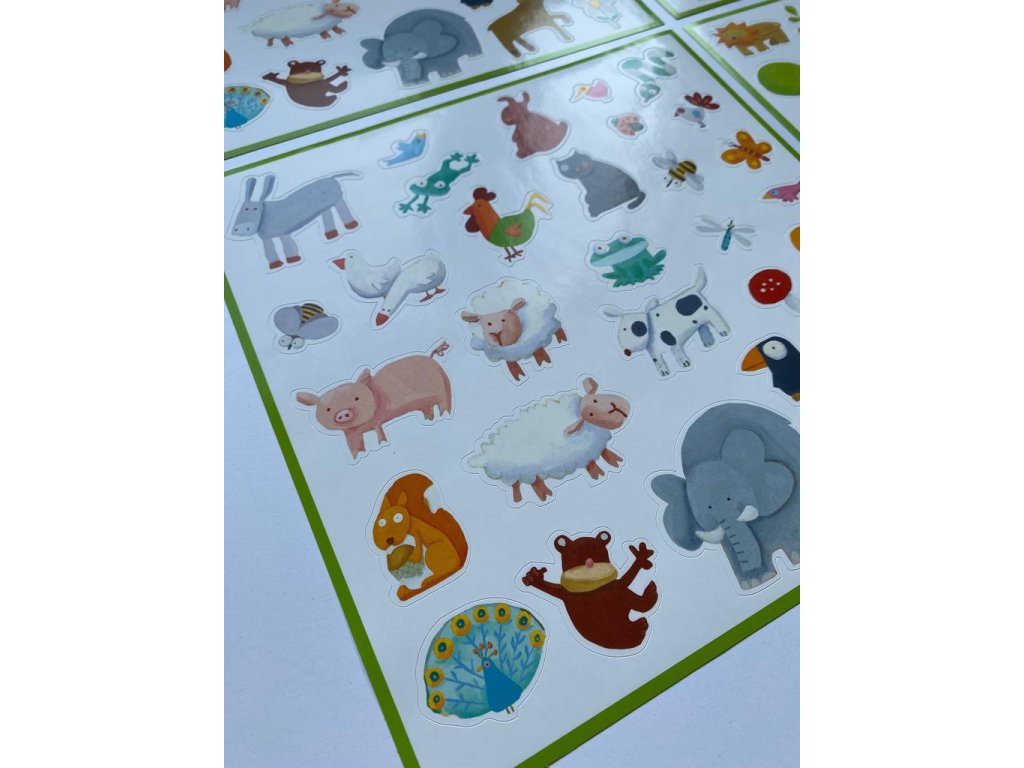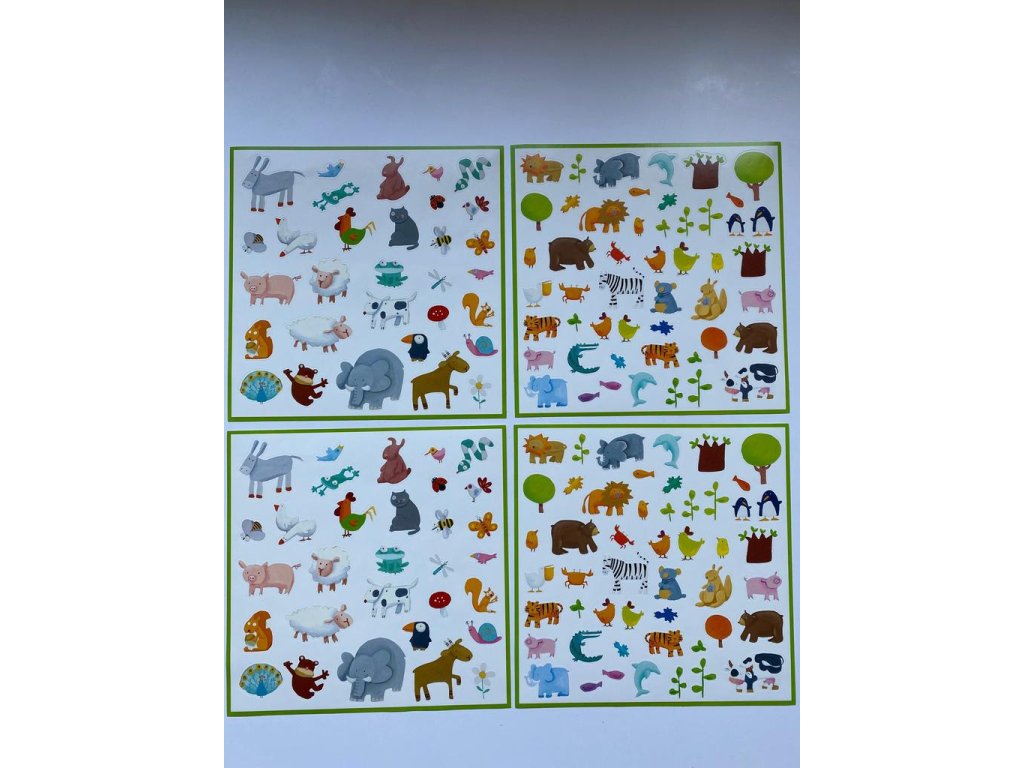 4 archy samolepek, ve kterých je dohromady 160 různých druhů (vždy 2 stejné archy).