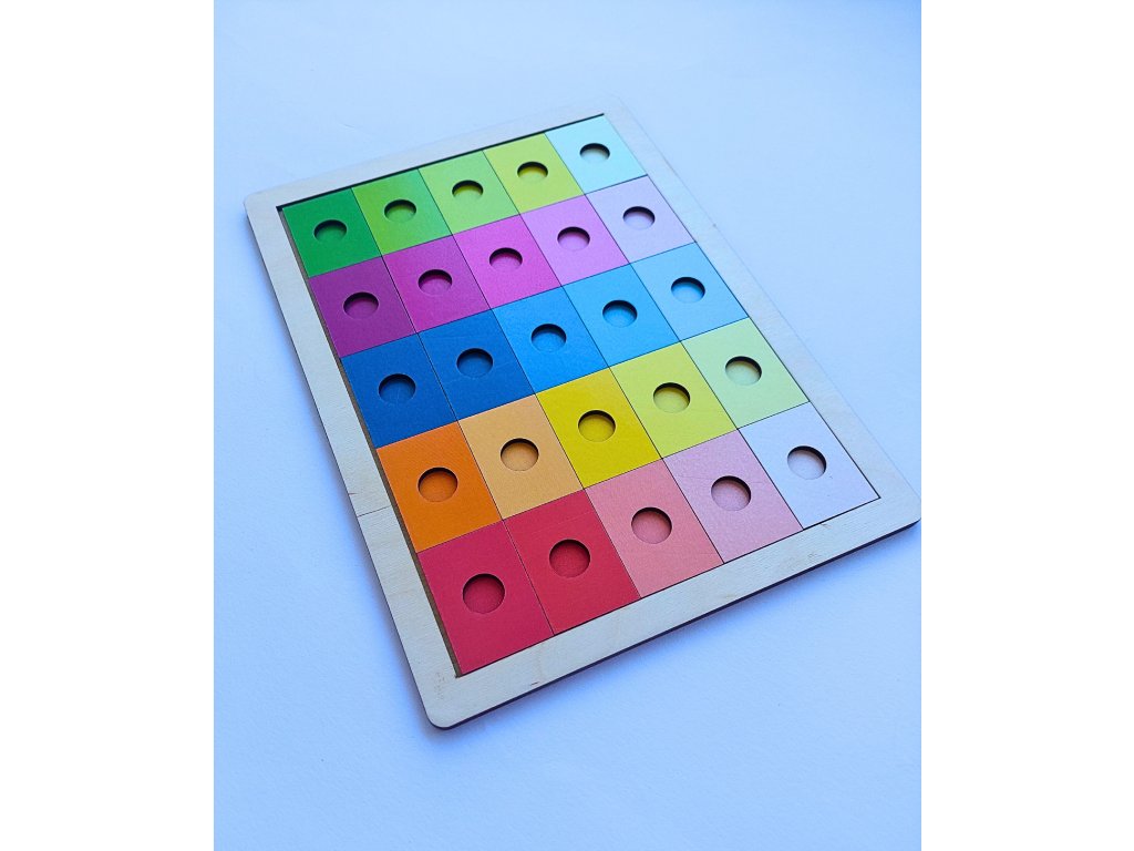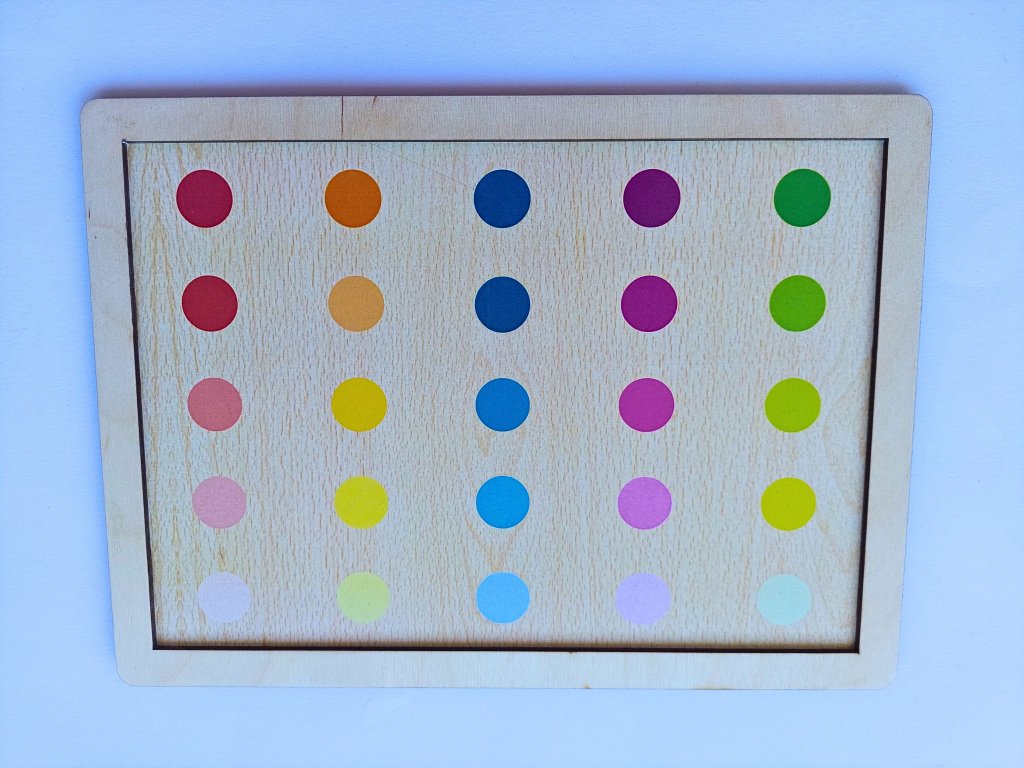 Dřevěná pomůcka z březové překližky u které si děti procvičí hlavně zrakové vnímání. Rozpoznávají jednotlivé odstíny barev a také je řadí od nejsvětlejší po nejtmavší.