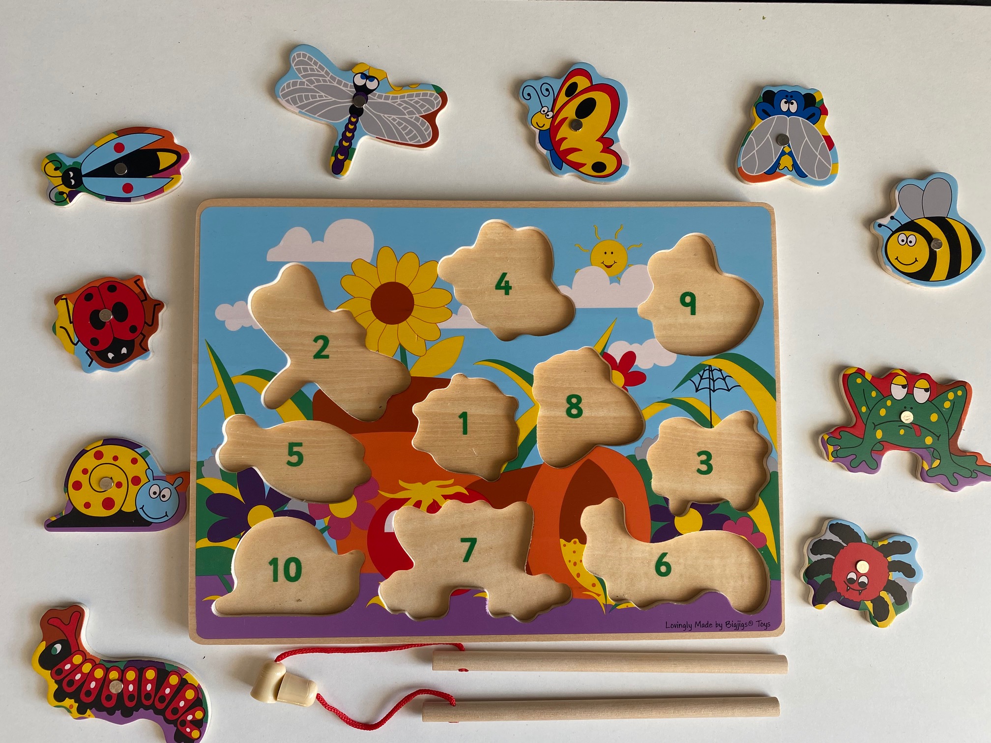 Každý vkládací kus má z druhé strany číslo, které se shoduje s číslem na destičce. Děti mohou párovat dvě čísla k sobě.