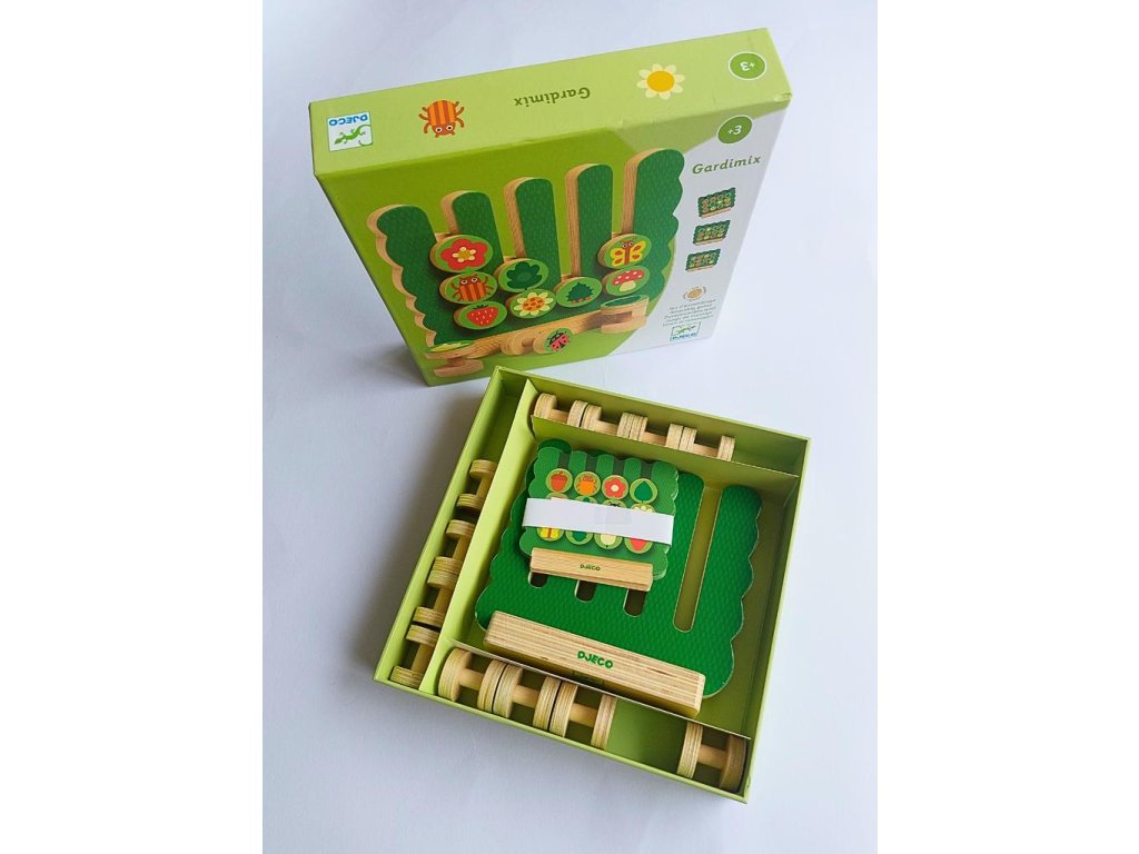 Zábavná hra Gardimix je krásně zpracovaná dřevěná hra podporující především logické myšlení a zrakové vnímání.