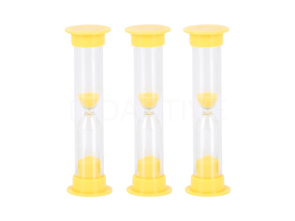 Žluté přesýpací hodiny přesýpají 3 minuty.